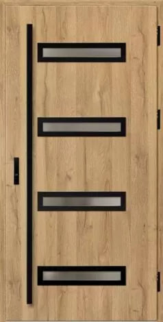 - Sleek external steel door leaf featuring distinctive horizontal glazing