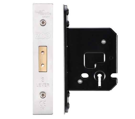 The Zoo Hardware 3 Lever Dead Lock is a practical and secure locking solution finished in satin stainless steel. Operated by one complete turn of the key, this lock is tested to BS EN 12209:2003 Grade 2 and conforms to FD30/60 fire certification requirements. Featuring a solid brass latch and deadbolt with a sintered steel follower, it is available in 67.5mm (2.5 inch) or 79.5mm (3 inch) case sizes. Supplied complete with a matching strike plate, fixings, plastic back box, and two solid brass keys, it provides a reliable option for interior and general-purpose applications. A keyed alike option is also available, allowing multiple locks to be operated with the same key for added convenience.