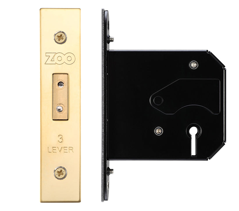 ZOO HARDWARE 3 LEVER UK REPLACEMENT DEAD LOCK (65.5MM OR 78MM) - PVD STAINLESS BRASS