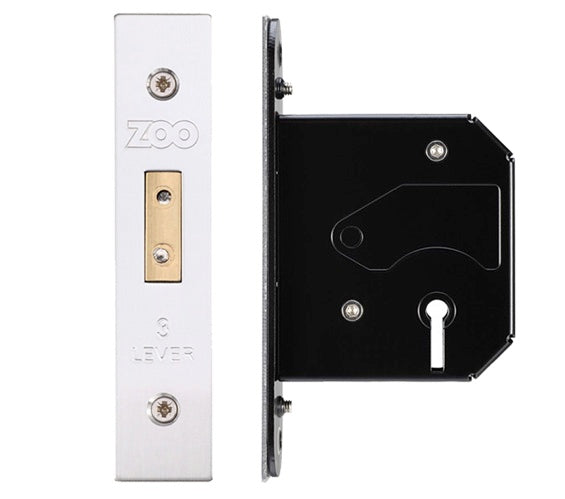 ZOO HARDWARE 3 LEVER UK REPLACEMENT DEAD LOCK (65.5MM OR 78MM) - SATIN STAINLESS STEEL