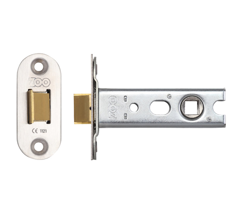 The Zoo Hardware ZTLKA Double Sprung Tubular Latch is a high-quality, heavy-duty latch suitable for both lever handles and door knobs. Designed for doors in constant use or commercial environments, it features architectural-grade double-sprung construction for durability. Finished in stainless steel, it includes bolt-through holes for secure fixing, a guided latch bolt, and an adjustable strike. Supplied with stainless steel face plate and strike plate as standard (except body-only packs), with additional finishes available separately as accessory packs.