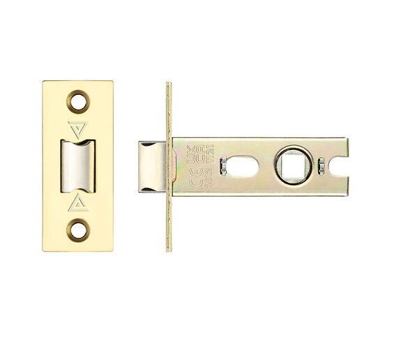 The Zoo Hardware Fire Rated Contract Sprung Tubular Latch is a light-duty mortice latch designed for domestic applications. Finished in PVD stainless brass, it features a self-guiding latch bolt and bolt-through holes for secure fixing with lever door handles. Fire rated to BS EN 1634-1, this latch provides reliable performance and includes an adjustable strike and all necessary fixings.