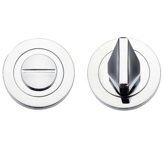 The Zoo Hardware Rosso Maniglie Bathroom Turn & Release is designed to complement the Rosso Maniglie Range of door handles. Finished in Polished Chrome, it delivers a sleek, modern look while offering durability and practicality. Manufactured from zinc base material, this turn & release measures 50mm in diameter with an 8mm projection. Fire tested to BS EN 1634‑1 for 30‑ and 60‑minute timber doors, it is supplied complete with a 5mm spindle and fixings, making it ideal for operating the bolt within a standard bathroom lock or tubular deadbolt.