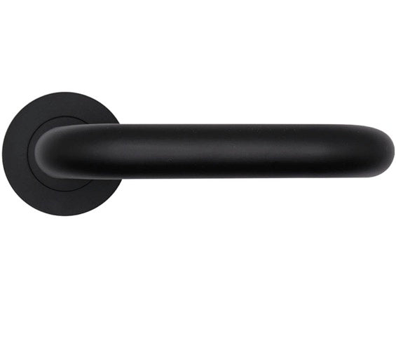 - Lugano lever on round rose design with cast stainless steel screw‑on rose
