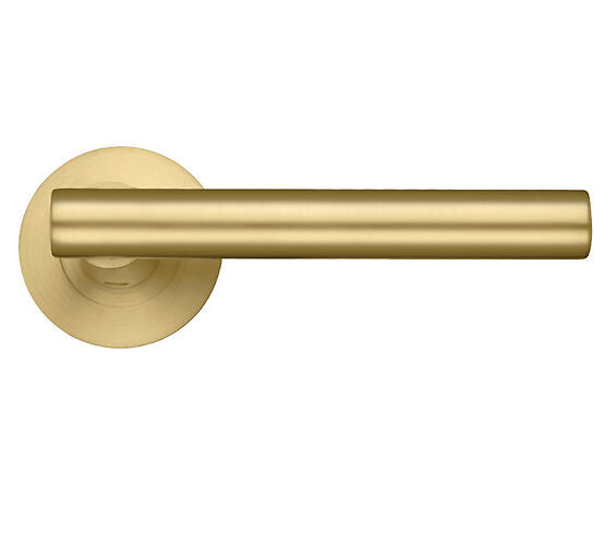 ZOO HARDWARE STANZA LUCCA LEVER ON ROUND ROSE FAVO SATIN BRASS - ZPZ090‑FSB (SOLD IN PAIRS)